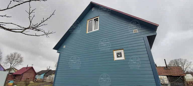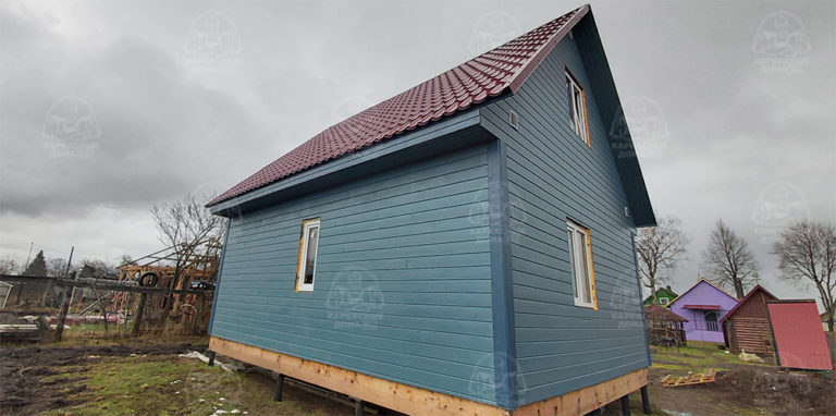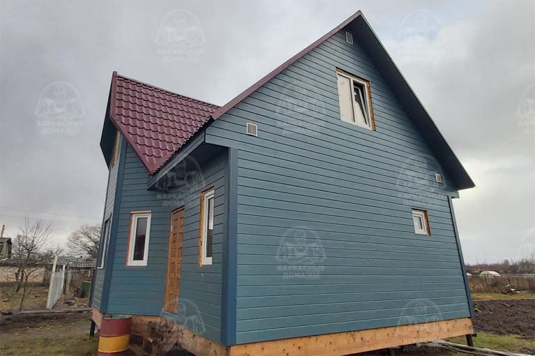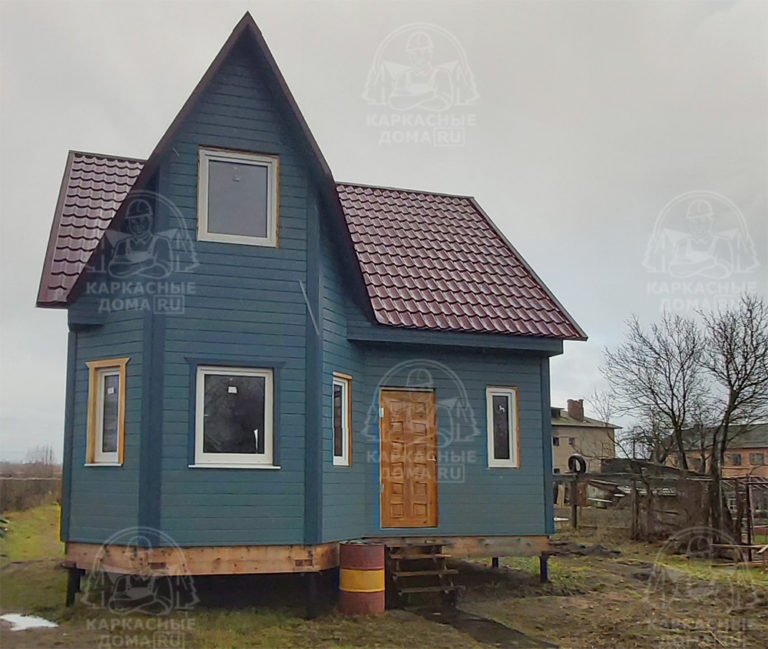 Строительство каркасного дома с мансардой и эркеромРазмером 7x7 для сезонного проживания