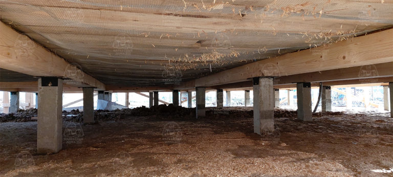 Пол - влагостойкие плиты «Quick Deck», шип-паз 16 мм. Под черновой пол выполнен монтаж оцинкованной, металлической сетки от грызунов.