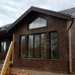 Выполнен монтаж водосточной системы Docke, коричневого цвета.