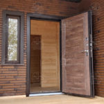 Входная дверь - «Винтер», утепленная (металл/дуб шале мареный), с терморазрывом. Размером 980х2066мм, количество 1 шт, толщина полотна 100мм, коробки 130мм. Производства НПО «Промет» России.