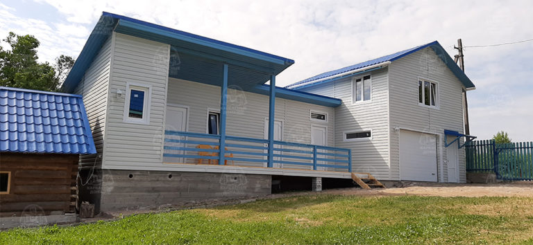 Дом из бруса под ключ в Псковской области деревня СоболицыБрусовой / каркасный жилой и гаражный комплекс, для круглогодичного проживания, с террасой.