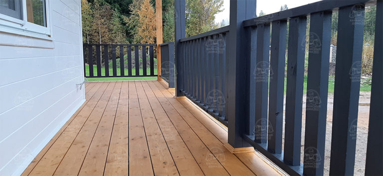 - В доме имеется большая терраса, выполненная в скандинавском стиле.