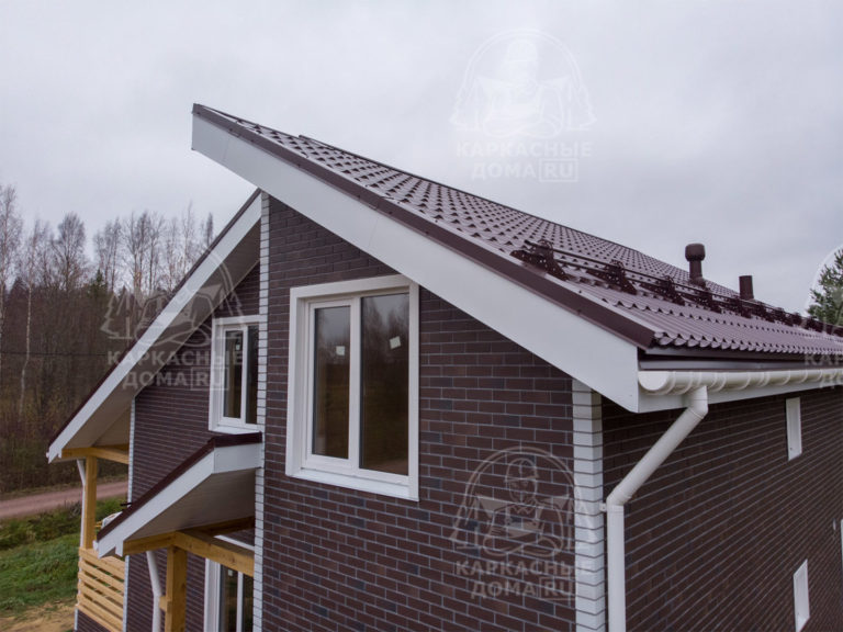- Двухскатная крыша. Кровельный материал- Металлочерепица «Супермонтеррей», толщиной 0,45 мм, цвет- RAL 8017, коричневый с доборными элементами. Производство «Grand Line», Россия.