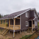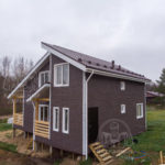 - Наружная отделка- ветрозащитные плиты «Белтермо», толщиной 20 и 35 мм, шип-паз. Затем, через вентзазор- фасадная панель «Docke» Berg, цвет-коричневый.